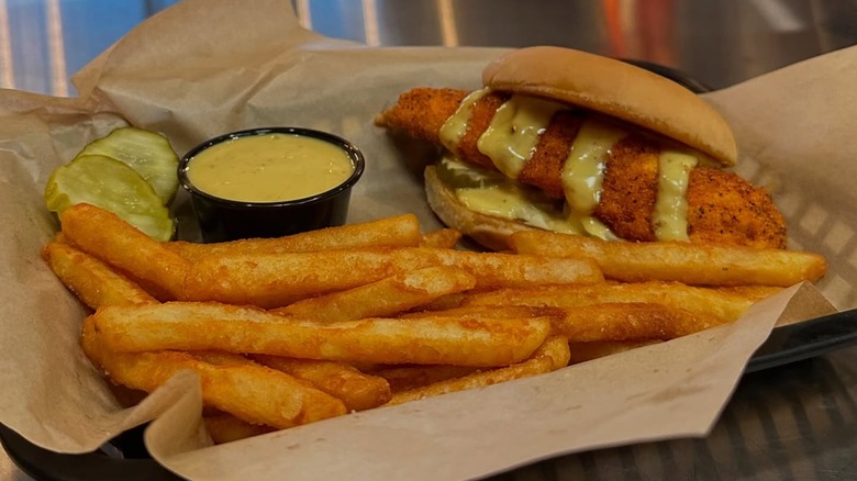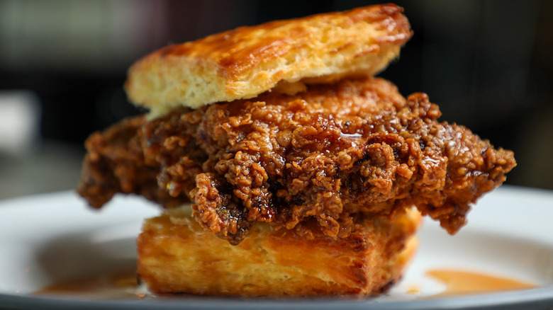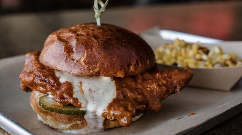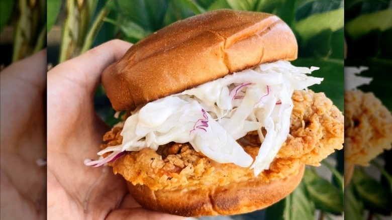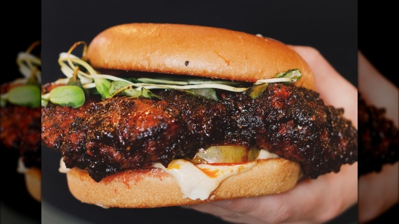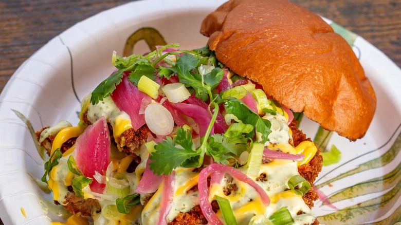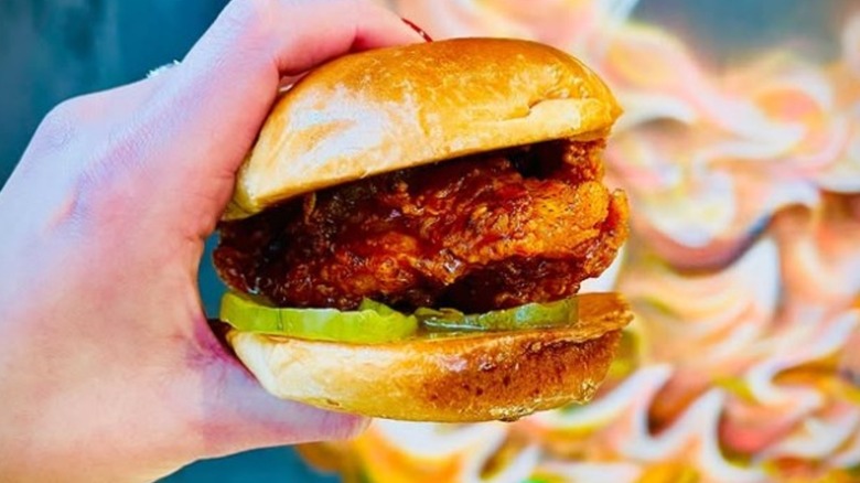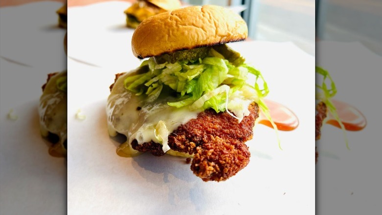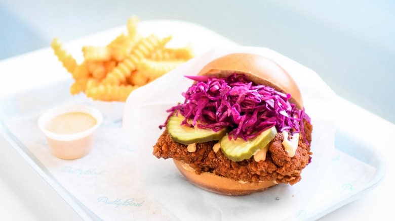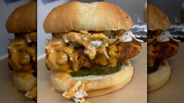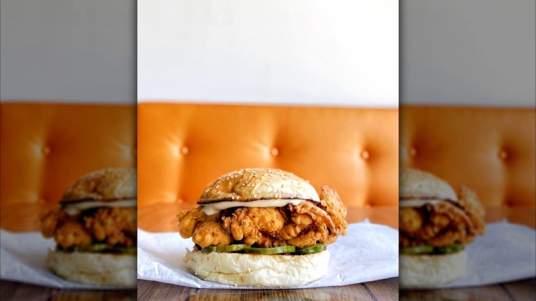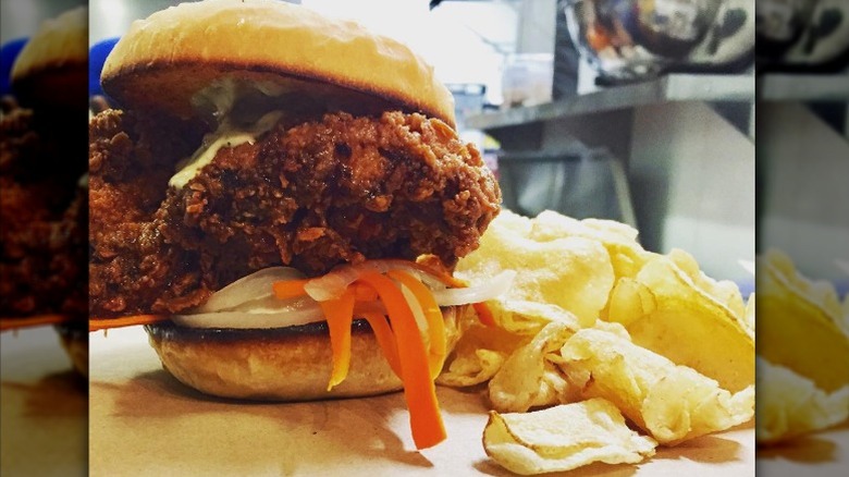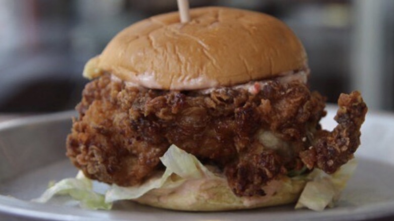 For a Southern, New American take on your chicken sandwich, try Beasley's. When you go with a traditional taste combination, you can't go wrong. Its Classic Chicken Sandwich is a well-cooked piece of chicken coated in a special sauce and topped off with shredded iceberg lettuce, all piled high on top of a soft brioche bun. Diners praise it as one of the best chicken sandwiches they've ever had — in spite of it being a bit on the messy side.