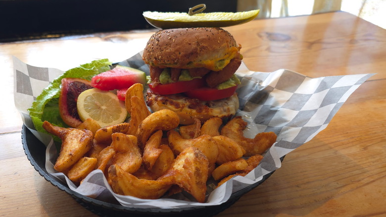 Located in a state like Wyoming, a diner with a name like Cowboy Cafe seems like it's all about beef and burgers. Look a little beneath the surface, and you'll be pleasantly surprised to find a well-received chicken sandwich that gets high marks from its customers. If you enjoy the signature flavor of sourdough bread, the Cran-Brie Chicken Sandwich is well-cooked chicken inside of sourdough, topped off with cheese, pecans, and cranberries, an offering that's gotten plenty of compliments for being tasty and tender.