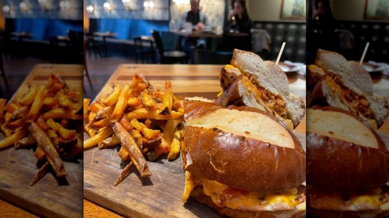 Head to The Old Goat in Michigan for a unique spin on a chicken sandwich. The Charley Apple Chicken-Heinen Bell Sandwich (say that five times fast) takes a healthier approach with a char-grilled chicken breast, hickory smoked bacon, slices of honeycrisp apples, garlic mayonnaise, pineapple barbecue sauce, haystack onions, and gouda — sitting on a grilled pretzel roll. The response is fantastic, with patrons praising its mix of textures and flavors and ability to inspire them to try more items on the menu.