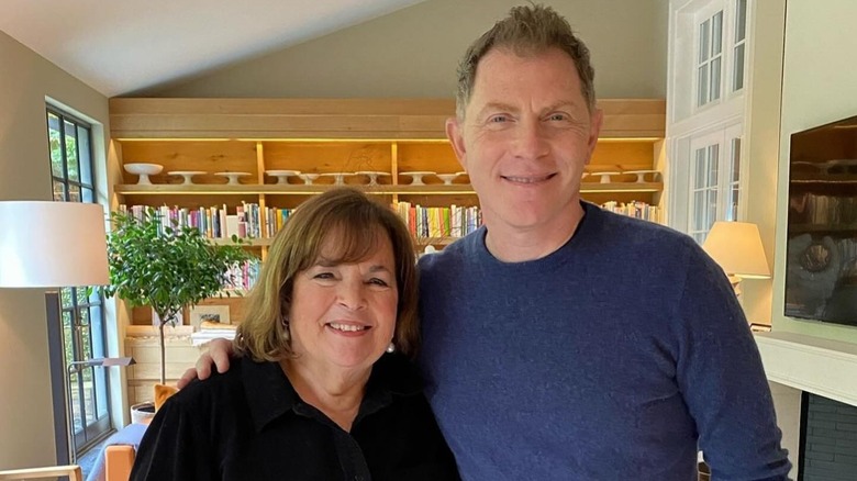 In addition to Bobby Flay's love for Child's quintessential French style, he's also inspired by his colleague and friend Ina Garten. So much so, in fact, that he'd never dare to go against her on an episode of "Beat Bobby Flay." The chef shared a heartwarming story of a time when his daughter was cooking Father's Day breakfast, and he was excited to see which of his cookbooks she decided to pull from. "And of course, she was using Ina Garten's. There's only one Ina." Flay has also shared that his lobster Cobb salad is a copycat recipe from a mind-blowing lunch that Garten served him while he visited her home for lunch.