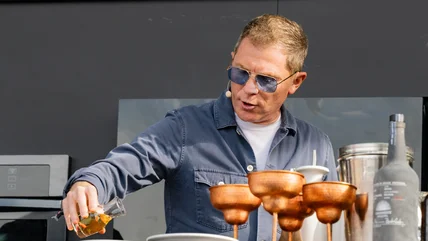 Flay discussed his love for Child's classic French cooking approach and how it inspired much of the menu at Brasserie B. "There's lots of classic things on the menu, whether it's the Vidalia onion soup or the duck confit or the Dover sole. Actually, I feel like there was a scene in the movie 'Julie and Julia,'" Flay said. "[Julia Child] was eating Dover sole with her husband in some French brasserie and that kind of kicked her off in terms of wanting to make a career out of [French cooking]."