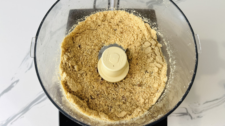 In a food processor, grind the vanilla wafer cookies to fine crumbs.