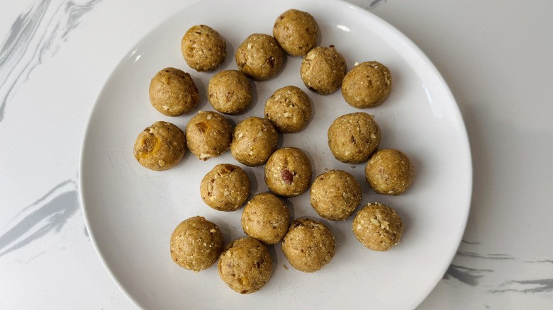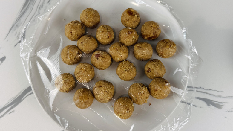 - Roll the mixture into 1-inch balls and transfer them to a plate.