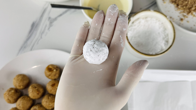 Rosenhouse's peachy bourbon balls are already a fun spinoff from the original recipe, but the options for customization don't stop there. "You can get creative with these bourbon balls in a few key ways," she states, "Swap the vanilla wafer cookies with any type of cookie you prefer, from graham crackers to gingersnaps, shortbread cookies, and more." To ensure you have the right amount of ground cookie crumbs if you're using a different shape and size of cookie, Rosenhouse recommends measuring out about 2 ½ cups.