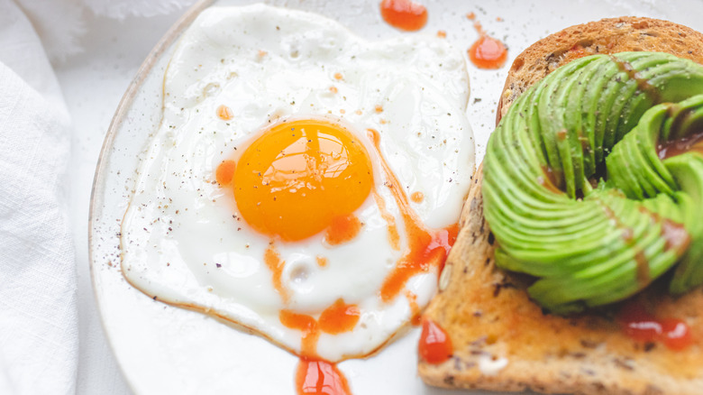 Jarred salsas are popular, of course, but feel free to opt for fresh homemade salsa to impart a zesty twist on your eggs. It's simple: After completing the cooking to personal preference, spoon the desired amount on the side or coating the fried eggs. This is perfect for that leftover bit still in the fridge waiting to be used up. Or for a different and no-less tasty tack, you could allow the eggs to simmer in the salsa, basting occasionally. This mirrors a Middle Eastern shakshuka, giving the eggs a richer consistency on account of absorbing the hot, bubbly sauce.