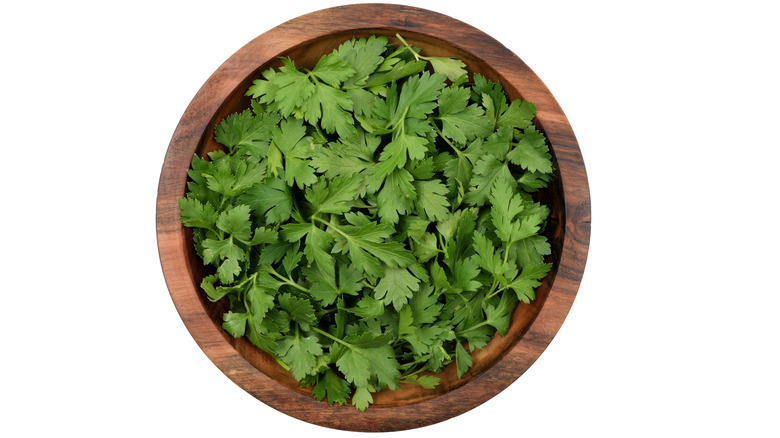 Parsley often gets a bad rap in the culinary industry as a stuffy outdated herb. It's frequently underutilized as just a garnish to add a pop of color to monochromatic dishes, but it can be used for much more. It's also widely available and fairly cheap, which makes grabbing a bunch even easier. Chopped parsley brings a clean, herby flavor to your fried eggs that can lift the dish's flavor and appearance. You can use fresh parsley for a lighter flavor or sprinkle your fried eggs with dried parsley for a more concentrated herb flavor.