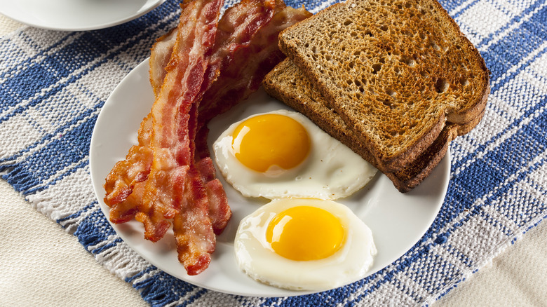 Salsa isn't just for tortilla chips — not when there's yolks ready to hit your skillet. Practically any variety and spice level is a game-changer for perking up a fried egg breakfast no matter how old-school. Nutritionally-speaking, it tends to be light in calories, while never sacrificing on a punchy kick of flavor to really make eggs crave-worthy. Green or red, habanero or mild pico de gallo, the spice and heat combine to imbue a zesty flair to your morning. For one idea of how to show off your eggs, consider breakfast nachos to feed a crowd.