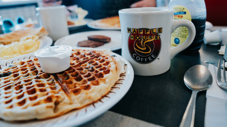 Some people might predominantly think of Waffle House as a greasy late-night diner known for its viral videos of customers — and sometimes staff members — fighting. Naturally, for a chain restaurant that's open 24/7, you can occasionally expect some hijinks, especially in the early morning hours. That said, Waffle House is a southern-based chain first and foremost. And, with that, comes some etiquette rules that the restaurant expects its customers to follow. Waffle House calls these its "house rules" and they are non-negotiable.