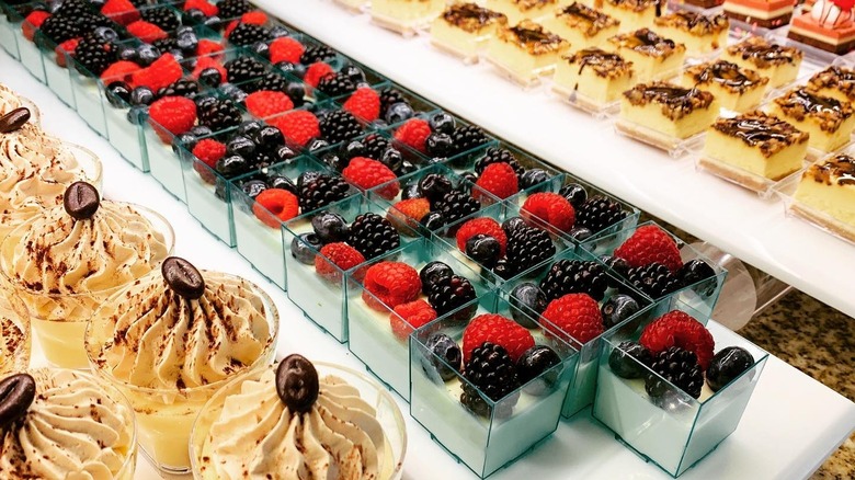 The food is plentiful at the Wicked Spoon, and by most accounts, it's pretty spectacular. Diners consistently call out the crab legs, chicken and waffles, and shrimp and grits. Also on offer are tacos, eggs Benedict, prime rib, sushi, pastas, omelets, and crepes. Then, you have a dessert station that beckons with confections like cheesecake, gelato, molten lava cakes, and more.