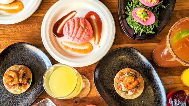 The first thing to decide at the Border Brunch is whether you want to start with a non-alcoholic Mexican drink like a café de olla or go for the bottomless mimosas, micheladas, and Bloody Marys. From there, you can make your small plate selections. Savory options include chilaquiles, spicy chicken tamales, and the barbacoa Benedict. On the sweeter side, you have dishes like the horchata french toast and prickly pear chia parfait. If you like, you can try one of everything and order seconds and thirds.