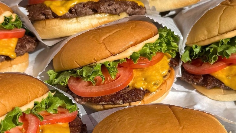 Head to Terminal 1 close to the B gates and you'll find Shake Shack's green and white signs beckoning from 5:30 a.m. to 11 p.m. daily. The burgers are top sellers thanks to their 100% Angus beef patties that are smashed thin on the grill to give them crispy edges and juicy interiors. If you're not sure which one to order, the SmokeShack topped our ranking of Shake Shack burgers for its smoky, spicy mix of cheese, bacon, and pickled cherry peppers.