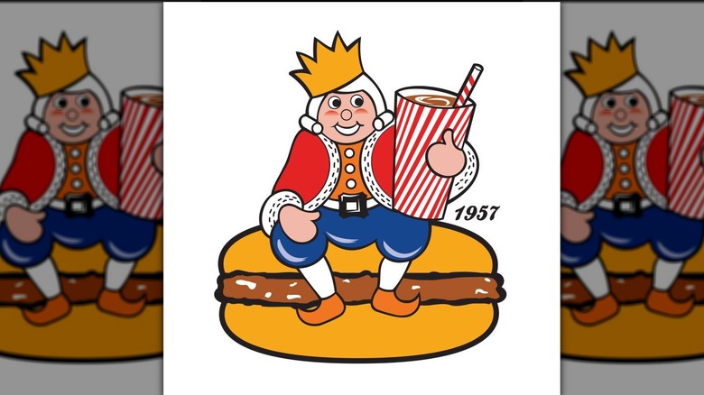 Fans of Burger King have seen many iterations of the logo since the company's inception in 1954, but the oddest version has to be the 1957 version. A literal king (wearing clogs, maybe?) sits atop a meaty Whopper throne while holding a soda that's half the size of his body.