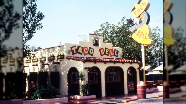 You know those letter blocks that toddlers play with? The old Taco Bell logo looked like a designer got ahold of a few of those and got some ideas. Today's Taco Bell logo is a sleek purple-and-white bell design — nothing like the choppy, funhouse-style lettering that we saw at Taco Bell back in the day.