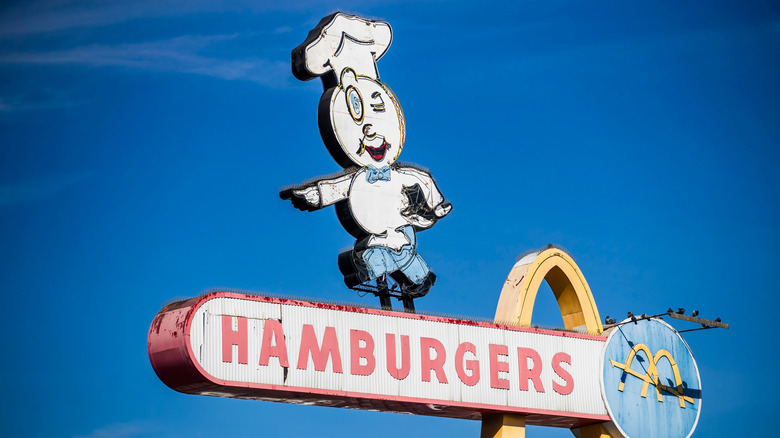 No matter where you go in the world, you'll recognize McDonald's by its iconic Golden Arches. However, this wasn't always the case. McDonald's logos of years past lacked the signature double arch that we associate with Big Macs and fries today. The mascot was different too: Instead of Ronald McDonald (who had a 60-year evolution on his own), customers got to see Speedee, a burger-flipping cartoon character named after the chain's Speedee service system. Unfortunately, he might be one of the fast food mascots that you've forgotten, as he was replaced with the chain's beloved clown mascot in 1967.