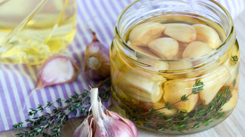 Oil is low-acid and seals off food from oxygen. The low acidity of the oil plus its ability to create a low-oxygen environment promote the growth of C. botulinum. Garlic in oil is usually held up as an example of what not to can. But you also need to avoid canning pesto, as well as any other oil-containing foods. Freeze those foods instead. Don't add oil to existing canning recipes, and don't assume word-of-mouth recipes are safe just because others haven't gotten sick.