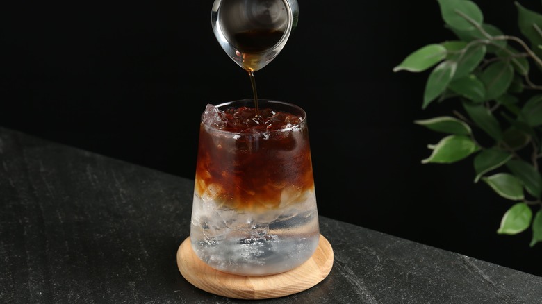 This caffeinated creation originates from Sweden, and its recipe is as straightforward as it sounds. Pour some tonic over ice, add fresh espresso, then add an optional splash of simple syrup or an orange slice garnish, and voilà. But what type of tonic water is best? Chowhound spoke to Andrea Allen, co-founder of Onyx Coffee Lab and former U.S. Barista Champ, to find out, "I prefer to use a high-quality, non-flavored or non-herb tonic water. Fever-Tree is a quality product that can be found widely."