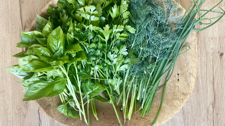 Whiskey barrel planters are often seen making big, bold statements outside storefronts or restaurants. They make the perfect home for flowering plants that pop like petunias and geraniums, but what many people don't know is they are also ideal for herb gardens, and the process of creating one couldn't be easier, requiring only a whiskey barrel planter, some potting soil, and your favorite herbs. Herbs easily grow together in a communal space where their roots can reach out and get the water and nutrients they need. It's also a major gardening hack, since it only requires watering one planter rather than a slew of individual ones.