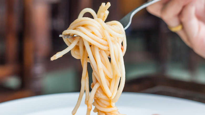 Moving on, while you can always salvage undercooked microwaved pasta by giving it extra cooking time, the same cannot be said for overcooked mush. Keep a close eye on the cooking time, checking on the pasta's texture at regular intervals, as the transition from undercooked to al dente to overcooked can happen in a matter of a few minutes, depending on the power of your microwave. Last but not least, salt the pasta water to improve the flavor of the pasta itself, and not just the sauce. With these basic tips up your sleeves, a kitchen hack that was meant to ease the process won't turn into the bane of your entire day.