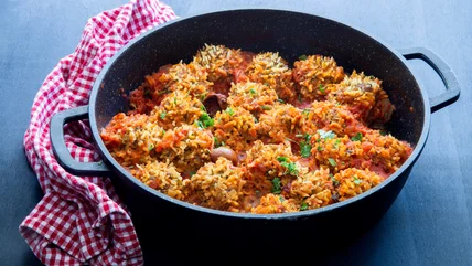 The name of this dish may lead you to make some pretty far-out assumptions about its contents. But we assure you: Porcupine meatballs are all beef, with an unconventional addition of uncooked rice. This dish gets its nickname from its appearance, which happens to replicate porcupine spikes. The rice granules inevitably create a quill-adjacent result once ready to plate.