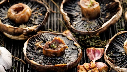 Mushrooms soak up marinades like a sponge, hold their form longer than most vegetables, and give that meaty umami flavor that both meat-eaters and vegetarians can totally get on board with. So when you're hosting a grill-out, don't skip out on them. Just treat them like you would a steak or burger, with similar prep and care, and you'll be enjoying juicy, charred mushrooms in no time.