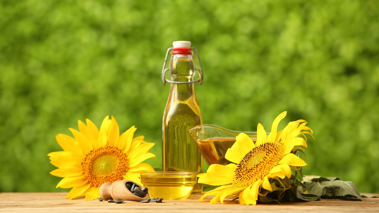 Mary Berry, an original judge on "The Great British Bake Off," is an expert on all things baked, and sunflower oil is her neutral oil of choice. It works just as well in a cake as it does in a muffin, or even a Yorkshire pudding, without muddling any flavors. That's why sunflower oil, yes, the kind made from sunflower seeds, reigns supreme as a third oil to keep in the kitchen.