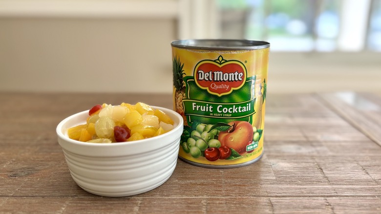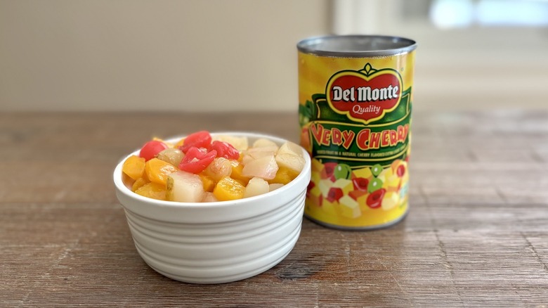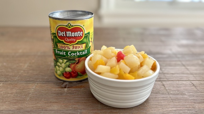 Of all the choices on the list, Del Monte Canned Fruit Cocktail in 100% Juice is the only one that personally affronted me because I grew up eating the version in heavy syrup and noticed the change. This one was less sweet than the other fruit cocktails on this list, but that wasn't the main issue — it was the preservation situation. The fruits in this mix were actually brighter in color than the regular fruit cocktail (anybody's guess why), but they were a bit mushier, and the grapes had a strange musty taste, like garage wine gone wrong.