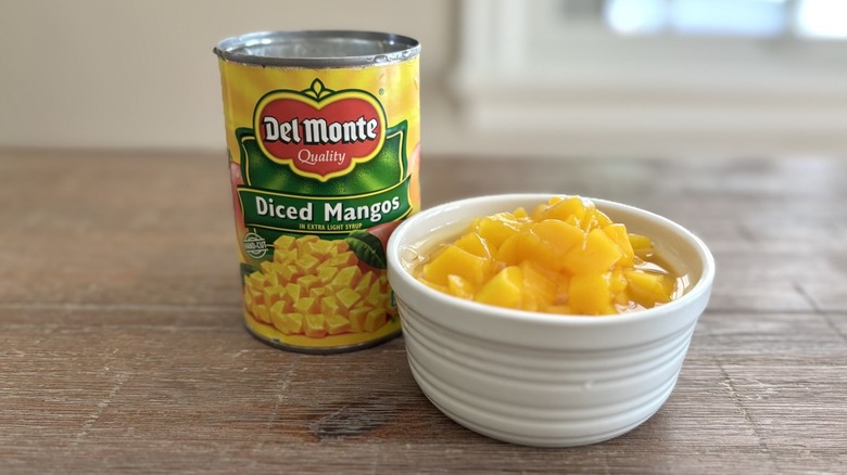 Either way, this canned fruit did a good job at being mango-flavored and mango-textured. It's not too sweet, pretty structurally sound, and a good substitute for fresh mangoes, which are hard to get ripe and in season. The only criticism came from the small boy, who thought it was too slimy and complained that it melted in his mouth ... which is maybe the only time in all of food writing that such a trait has been used as a criticism.