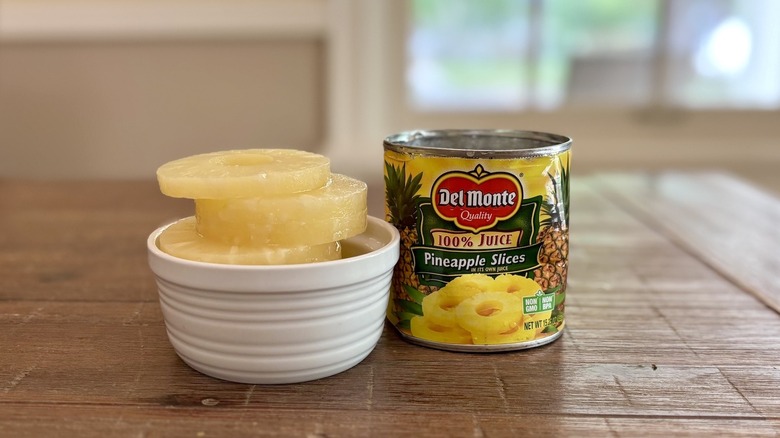 However, the rounds were bland, not nearly as good as gold pineapple, which is a sweeter and less acidic strain. If you like your Del Monte canned fruit a bit less sweet, like the uncle does, then you might prefer this one. And either way, if you are going to buy high-acid canned fruit, you should eat it within 18 months because the acid will start to eat away at the insides of the can.