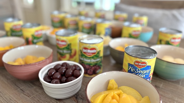 If you're like me, you associate canned fruit with childhood. Or maybe car camping. Or possibly with making pie or cobbler. Now that I think about it, I have all three associations, so my enthusiasm level when Del Monte offered to let me taste its product lineup was high. I assembled my trusty taste test team — the husband, the small girl, and the small boy — plus an aunt and uncle who were visiting and gamely agreed to sample 17 canned fruits in one afternoon. (Because when you go on vacation, isn't that at the top of the bucket list?)
