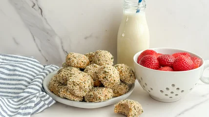 Wellness coach and recipe developer Miriam Hahn brings us this recipe and says, "I love having these balls as a pre-workout boost when I need a little something that won't weigh me down. The mix of protein, fat, and fiber is satisfying and acts as an energy source for exercise."