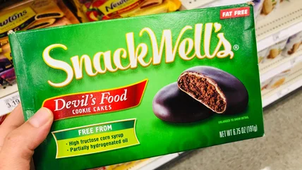 The graveyard of discontinued '90s snacks and sodas is vast and sprawling, but tucked far behind the resting place for OK Soda, the long-forgotten Hubba-Bubba soda, and the beloved but discontinued Dunkaroos are SnackWell's cookies. Consisting of several low-fat cookies, crackers, and snacks, the line is perhaps best known for its devil's food cookie cakes. These snack cakes are iconic, at least to anyone who lived through the 1990s. The shiny, rounded, dark brown surface covered a dry cake interior that was lined (thinly) with marshmallow. During the decade of Nirvana, grunge, and the internet revolution, SnackWell's cookies were not just popular; they were inescapable.