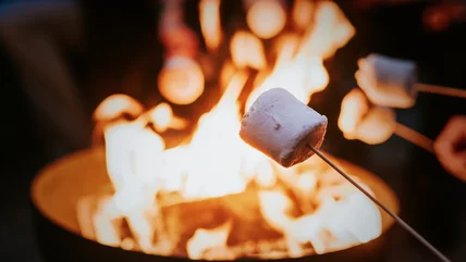 Instead, just grab some candles. They are safe and convenient, and a good idea to keep on hand anyway in case of a power outage. It may take a bit longer to get the heat you need, but the flame is controllable and easy to work with. If you really want to create a campfire vibe, you can set up camp chairs and make some outdoorsy lights with strategically placed Mason jars. With the stage set, you can get to work making your impromptu s'mores, toasting them carefully over candlelight. You'll want to use unscented candles and stay away from paraffin; instead, choose a non-toxic material like beeswax or soy. That way your candle flame won't alter the flavor of your marshmallows or make them unsafe to eat.