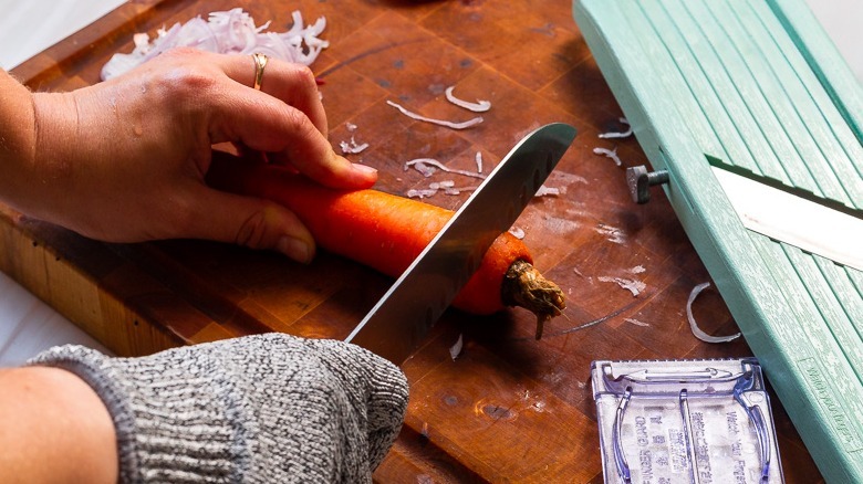 Mandoline slicers are as necessary for making viral TikTok cucumber salads as they are for slicing meats for sandwiches. They also make the prettiest onion slices, can fake a julienne dice, and so much more — but all that convenience comes at a steep price. In 2011 alone, nearly 22,000 people ended up in the emergency room due to cuts from slicers and choppers like the mandoline. With an extremely sharp device like this, learning proper technique becomes necessary for survival.