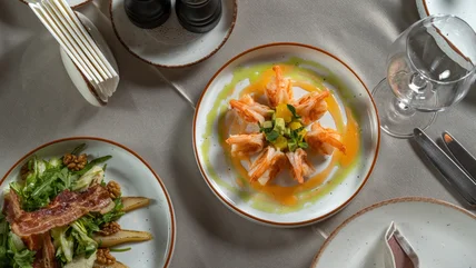 Conchas de Piedra is a collaboration between the Casa de Piedra winery and Deckman's, a refined restaurant that focuses on sustainable seafood and local produce. With that in mind, you can expect fresh catches paired with sparkling wines direct from the winery. The menu changes daily depending on what's available and in season. It often features Baja-style Mexican dishes like bright ceviches, oysters on the half shell, abalone aguachile, clam tiradito, and tempura-style seafood tacos. Vegetarian options are also available. You can opt for à la carte dishes or multi-course tasting menus.