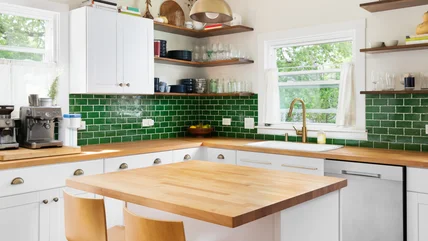The trend was a hit in the 1990s because it aesthetically matched what was popular in design at the time: a lot of wood to create a cozy, comforting, and maximalist feel. If your nostalgia is pulling you back to the comfort of the '90s, you can implement this design trend into your kitchen, and there are a few ways to do it. You can use a prefabricated slab and have it fit to your island, which can cost between $200 and $500. You can also have one built and priced by square foot, which is usually between $25 and $100 per square foot. You can also choose to buy a portable one with wheels, which runs anywhere between $200 and $1,000.