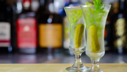 There are multiple ways to go about this. Not only can you use your freezer pickle recipe, but you can also make special cubes for your drinks. Try freezing your favorite salty and tart pickle brine in an ice cube tray and using them to keep your drink cold. As the cubes melt, they will diffuse a salty and herby flavor into the surrounding mix, balancing out the savoriness and making it taste even better. You can also add the pickle cubes, or the whole pickles themselves, to a blender with your bloody mary ingredients to make a frosty, boozy slushie perfect for a summer brunch.