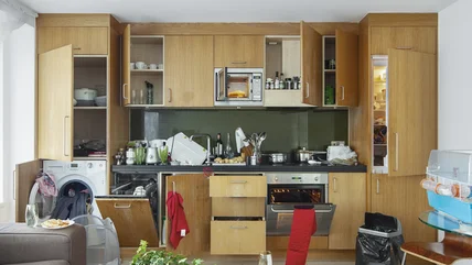 Smaller units that fit on shelves or in cabinets are ideal for stashing smallish items like rolls of foil, plastic wrap, or parchment paper, which can free up space in a drawer. Cutting boards can be lined up side by side and slid into a cabinet or stashed on a bookshelf next to some cookbooks. You can also organize water bottles and even label them for each member of the household, or use a few under the sink to arrange cleaning supplies, sponges, and dishwasher detergent.