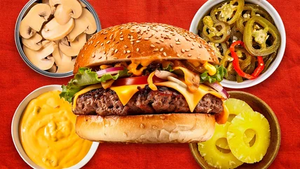You may be familiar with chili dogs, but what about chili burgers? We love adding spicy chili to our burgers (beans please, but we respect if you prefer to go Texas-style) because it adds not only heft but also a warming mouthfeel perfect for a blustery winter day. Chili comes in many different forms, including with plant-based "meat," beef, turkey, or chicken, and if you take a stroll down the aisle of your local grocery store, chances are that you'll find one that appeals to you. Then, once you remove it from the can, you can doctor it up with additional spices (and hot sauce, if you prefer things spicy-spicy), warm it up, and slather it on your burger. Chili, especially canned versions, tends to be very well-salted, so you'll want to give your brand of choice a taste and season your patty and toppings accordingly.