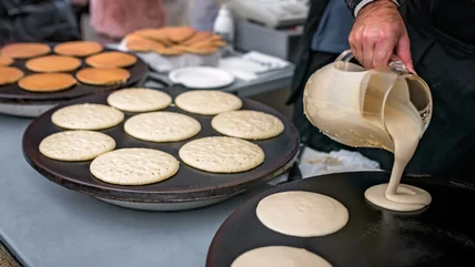 To try making these yourself, start by making a pre-ferment with yeast, warm buttermilk, and flour, then let it sit for an hour to let it develop both flavor and rise. As you let it rest, grab two separate bowls and whisk together the remaining pancake ingredients, separated by wet and dry ingredients. Combine the pre-ferment with the wet mixture. Once combined, you will want to gently fold in the dry ingredients until smooth. With your batter made, cook your pancakes on a warm skillet. Once they cook to that lovely golden brown, plate and serve immediately with butter and or syrup.