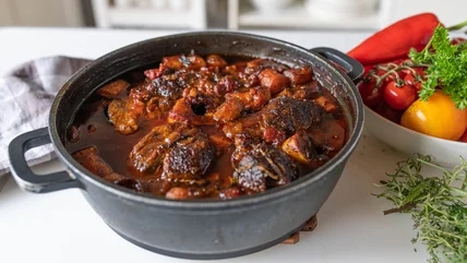 The best choice for braising is something full of strong flavors, since the flavor of your liquid will be imparted into the meat along with whatever aromatics you add to the liquid bath. This makes your favorite soda an excellent choice for your next braised dish. Soda pop is known for its wide variety of strong flavors, and its high sugar content will help really tenderize your meat and liquefy tough tendons during the cooking process. The type of sugar is crucial to this process, so it's strongly recommended to find naturally sweetened options when using soda to braise.