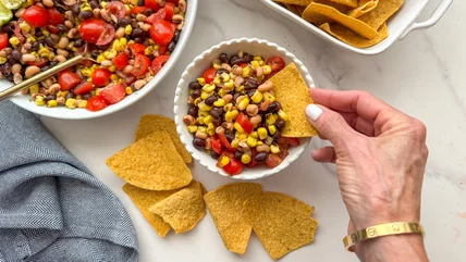 Not all recipes have to be ingredient-heavy, and this 5-ingredient cowboy caviar is proof that sometimes a pared-down version is just perfect. You'll love the balance of flavors and textures in the hearty black beans and black-eyed peas, the smoky flavor of fire-roasted corn, the juicy fresh tomatoes, and the zippy lime juice in this dish. This dip only takes a few minutes to throw together and then ample time to chill to let the flavors blend, and before you know it, you'll be scooping up the mixture with your chip of choice.