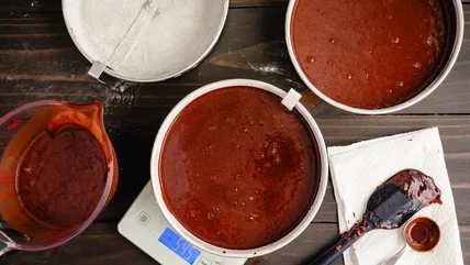 When it comes to greasing the pan, bakers also like to use different types of oil (like coconut, canola, or olive oil), bacon fat, or even nonstick cooking spray. But one option really stands out from the crowd and gives you the best choice for greasing your pan: shortening. It's essentially a fat that solidifies at room temperature. While shortening can come from different sources, even including butter, shortening derived from vegetables is an ideal option for greasing a baking pan because it has a neutral flavor and therefore won't change the taste of your cakes the way a rich fat like butter will.
