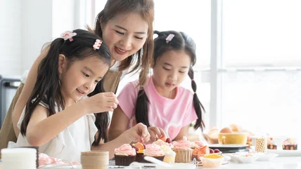 Just make sure you have the time to do it. Set aside double the time you think those muffins will take (or that it says it will take at the top of the recipe). Don't rush anyone through any steps, instead teaching new techniques and explaining the chemistry of baking patiently. If you can afford to take an afternoon off at the spur of the moment, good on you. If you can't, choose a calm slot after school or a weekend day when no one has any activities upcoming, so that you can really lean into the activity. Let your kids know that you'll be baking then, so that they can look forward to it.