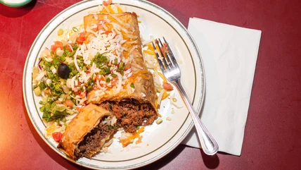 The highly debated story of the classic, deep-fried burrito known as the chimichanga begins in Tucson, Arizona. In the 1920s, Monica Flin, owner of the long-running family restaurant El Charro, is said to have accidentally dropped a burrito into a fryer. Upon realizing her mistake, she almost shouted a Spanish curse word, but caught herself and blurted out "chimichanga." The phrase was nonsense, but it was funny enough to stick. The name stuck around, and so has this infamous Tex-Mex dish.