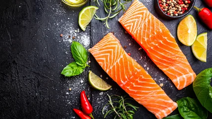 Luckily, adding pesto to your next round of salmon takes very little preparation. Take your pick from the best varieties of store-bought pesto, then add a generous spoonful to each fish filet. Simply oven-bake or air-fry your salmon, whip up a couple of sides, and dig into your tender, herbal dinner.