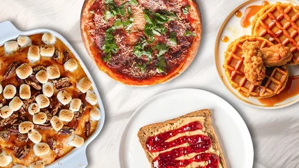 It's not surprising that fried chicken and waffles came together into one dish, considering that both date back centuries in the U.S. The Pilgrims brought waffles to America via the Netherlands, and fried chicken has been around since early colonial days, brought over either by the Scottish or enslaved people from West Africa. We don't know who first combined the two, but we do know that it was popular as far back as the 1930s, when it was on the menu at Well's Restaurant in Harlem, New York.