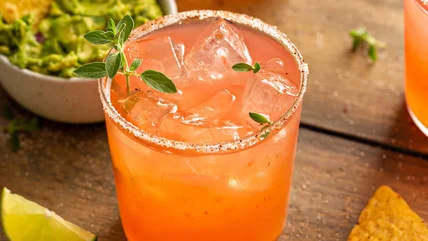 What's the best type of fruit puree to use on the rim of your mixed drink? According to Kaitlyn Stewart, "Chamoy is the GOAT [sic] fruit puree to rim a cocktail with. Great for micheladas and margaritas." Chamoy is a sweet, sour, spicy fruit-based sauce. Ingredients in this popular Mexican condiment include dehydrated fruit for sweetness, such as apricots, plums, and mangos, lime juice for acidity, and dried chiles for spiciness. In addition to being a creative margarita rim, it's commonly used as a marinade for grilled pork, as a dip for fruit and veggies, and drizzled over nachos. You can even make your own chamoy pickles at home.
