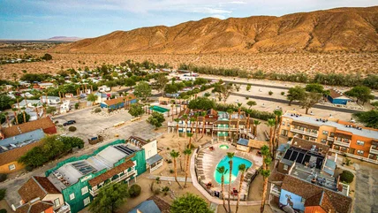 In November 1949, three planes full of Hollywood actors arrived at a small private airport located in the then-newly-developed desert community of Borrego Springs, California. Among the stars who came were Lon Chaney Jr., famous for playing Hollywood monsters like the werewolf, and the Irish actor Brian Donlevy, best known for his role in the "Beau Geste" (1939). The stars were there for the gala opening of Hoberg's Desert Resort. They were able to relax by the heated pool, go horseback riding, enjoy a game of tennis, and enjoy high-quality cooking during their stay.