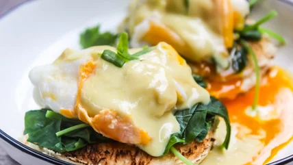Buttery, lemony French hollandaise seeps beautifully into the nooks and crannies of a crumpet-like English muffin. The two flavors are brought together by the salty goodness of cured ham and the richness of golden egg yolks, which are popular across many cultures. If you're a fan of fusion and find the traditional foundation of this dish a little dull, you might try infusing it with even more culinary diversity by swapping out the English muffin for a crisp and cheesy quesadilla.