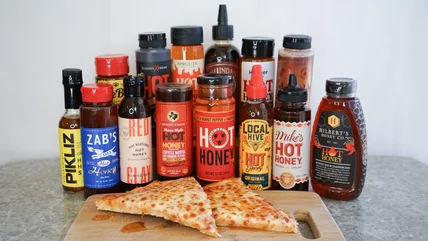 With an almost tart edge combined with a definitive strong honey flavor, it could be slathered on pancakes and biscuita, and is mild enough to complement cheeses on a charcuterie board. This one may not go well with pizza or fried foods — it's a little too subdued and fruity. Nate's is a darker amber, with a thinner consistency, and the bottle is a pleasant shape with a honeycomb pattern. Nature Nate's is a good hot honey for chile-curious hot honey beginners. Some just don't like it (that) hot.